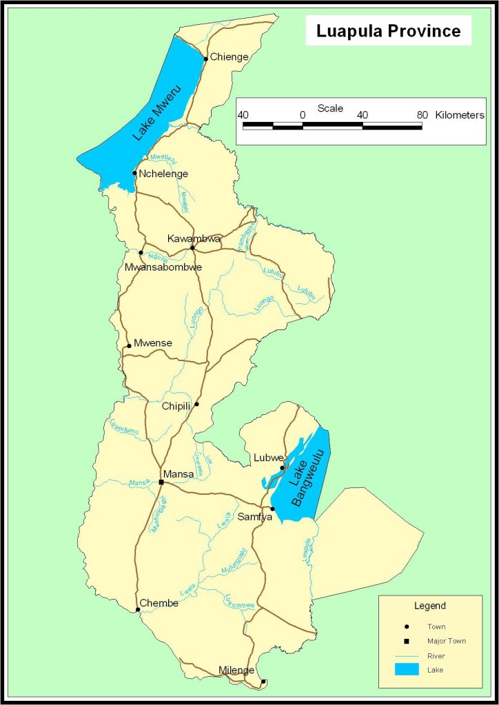 The Luapula Province of Zambia is located in the west of the Northern part of the country.